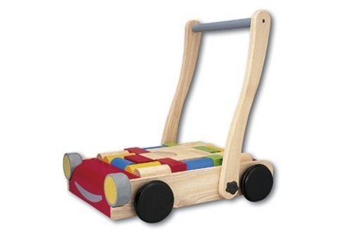 Plan Toy Baby Walker has joined innovation with "old world toys" by crafting a progressive tool for crawlers who would be walkers. An adjustable handle, a low center of gravity and 24 natural and colored unit blocks make this cheerful looking toy a must for any collection. Made from recycled rubber wood and colored with natural stains, when they aren't using it for building future skyscrapers, it will invite your crawler to his or her feet and get them moving. Ages 1 year and up.