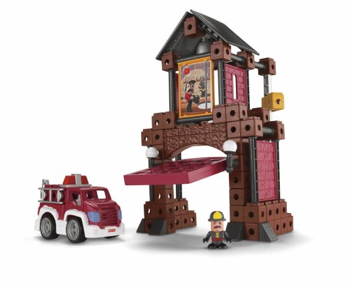 Build a world of city adventure! Easy-click bricks, sticks, and panels let kids build and rebuild all kinds of Fire Station imagination, with double-sided snap-in picture panels that let them choose and change their city adventures. Firefighter figure snaps on to the bricks, slides down the pole, and can "drive" the fire truck that kids build themselves-and the station door really opens and closes! Includes 91 pieces. All pieces in the TRIOTM Building System work together. Collect them all and build a world of fun!