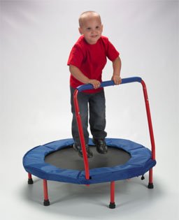 A must have for young children to keep fit, burn off that extra energy and to help those children with developmental and/or physical needs. Both frame cover and handle grip are padded for extra safety and the durable frame finish allows for indoor and outdoor use. Easy to store when not in use just unscrew the legs and remove the handle bar. Instructions and tools included. Recommended to hold 1 child at a time and up to 150+ pounds for safe bouncing. The Original Toy Trampoline is the only trampoline on the market today that is ASTM Safety Approved by the Federal Government and also now meets the new Federal Law HR4040 Consumer Product Safety Improvement act of 2008.