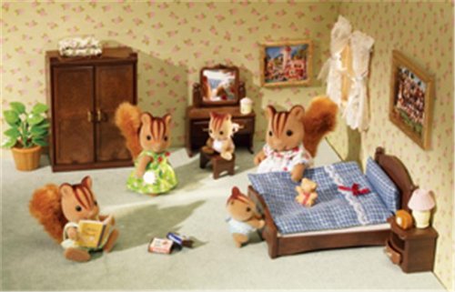 The chocolate colored furniture is sure to keep the master bedroom looking stylish! Includes bed with matching bed sheet and pillow, armoire with drawer, vanity/dresser with mirror and 2 drawers, bench, night stand with drawer, lamp, cosmetic jar, alarm clock and 2 books.