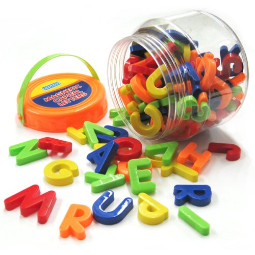 This cool toy, ''Magnetic Capital Letters'' by Megcos Toy Company LTD, will help you r little one learn English letters while offering hours and hours of fun as they arrange and rearrange these colorful letters on pretty much any metal surface: board, filing cabinet, or your fridge! Toys are a great way to express your love and care. Who knows, maybe this item will become the priceless memory your kid will cherish for the rest of their life? Comes in a colorful box measuring 5 x 5 x 4.1 inches.Exciting and educational, this toy would make a nice gift for any child!